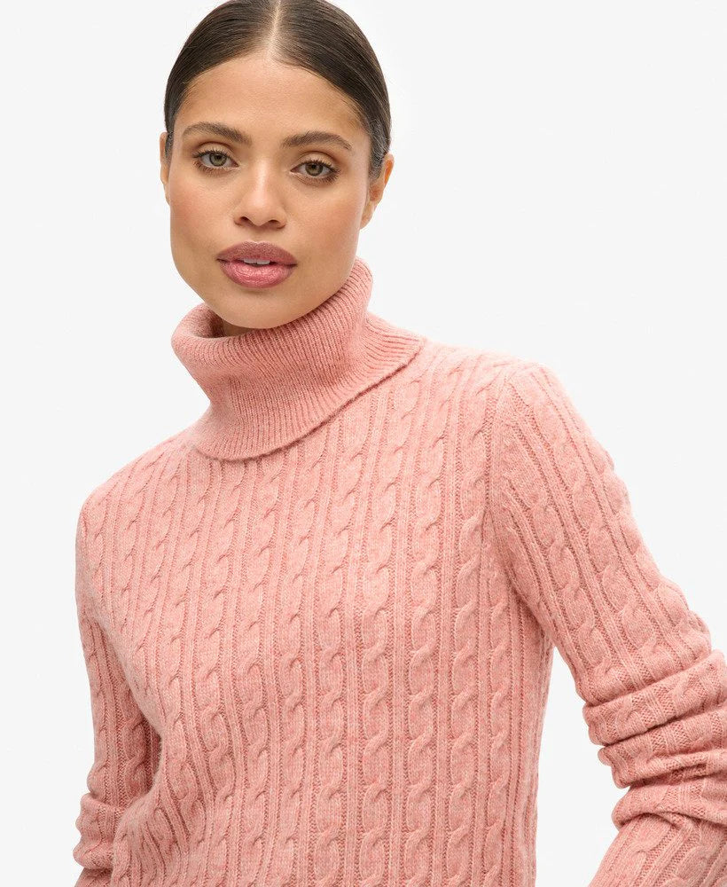 SUPERDRY FITTED CABLE ROLL NECK JUMPER-ROSE