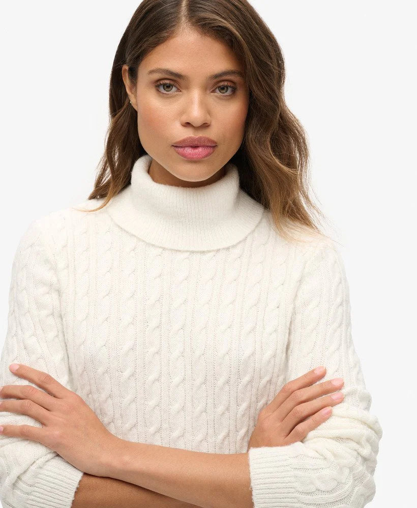 SUPERDRY FITTED CABLE ROLL NECK JUMPER-ECRU