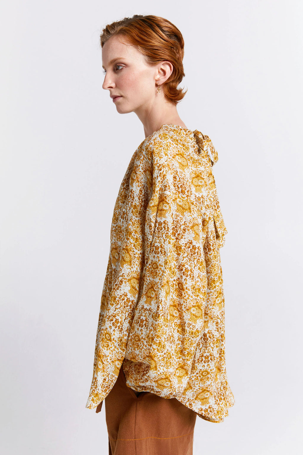 KAREN WALKER HEIRLOOM BLOUSE-OFF WHITE/ANTIQUE GOLD