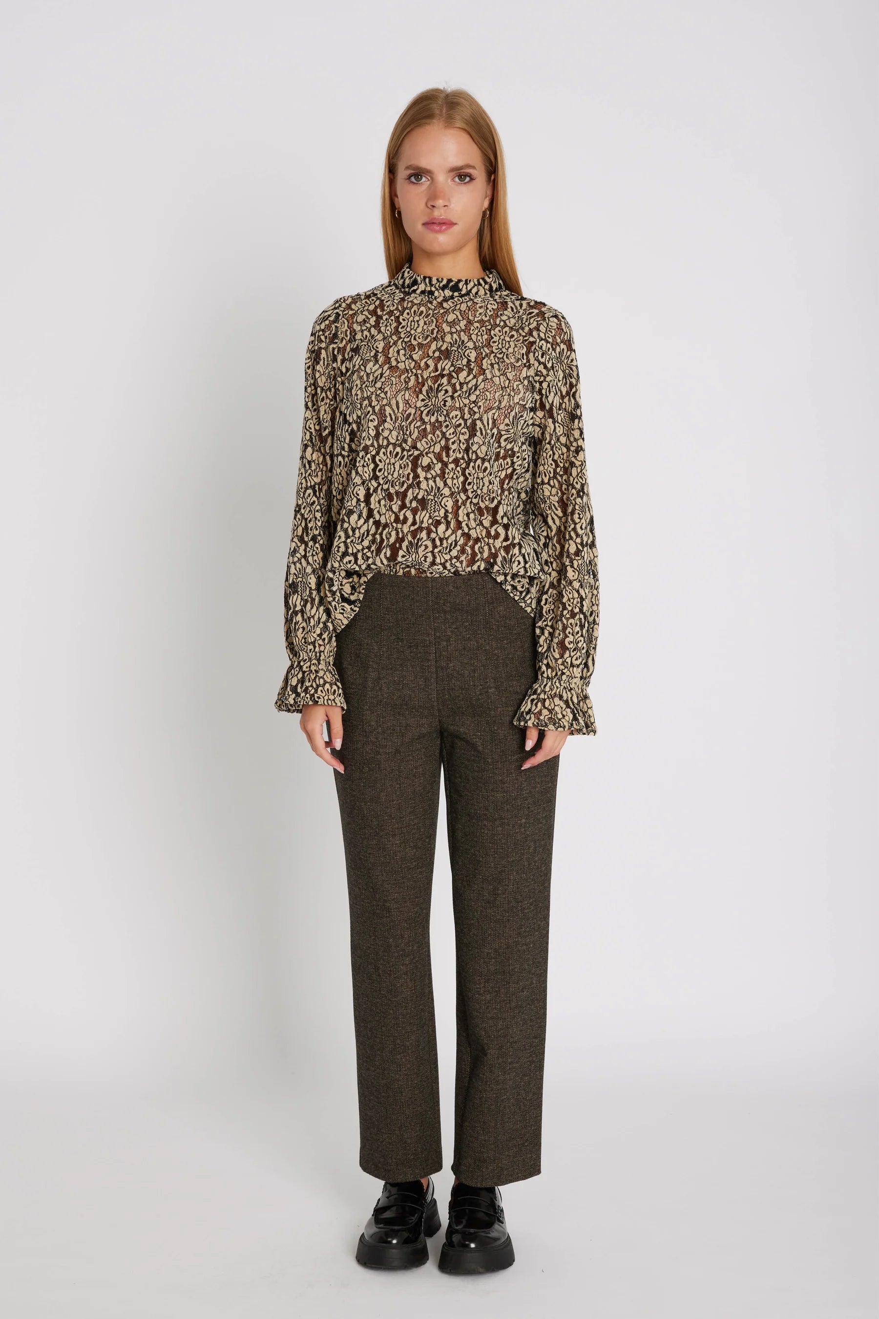 Olana Regular is a pair of classic trousers with a straight fit and elastic waistband for extra comfort. The design is simple and elegant with fine press pleats at the front.