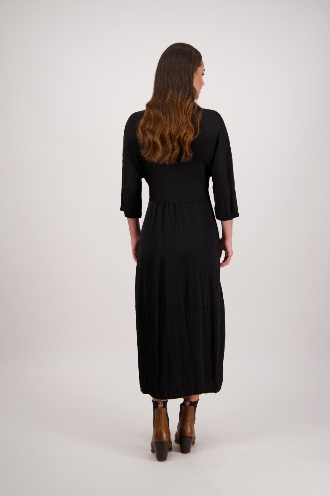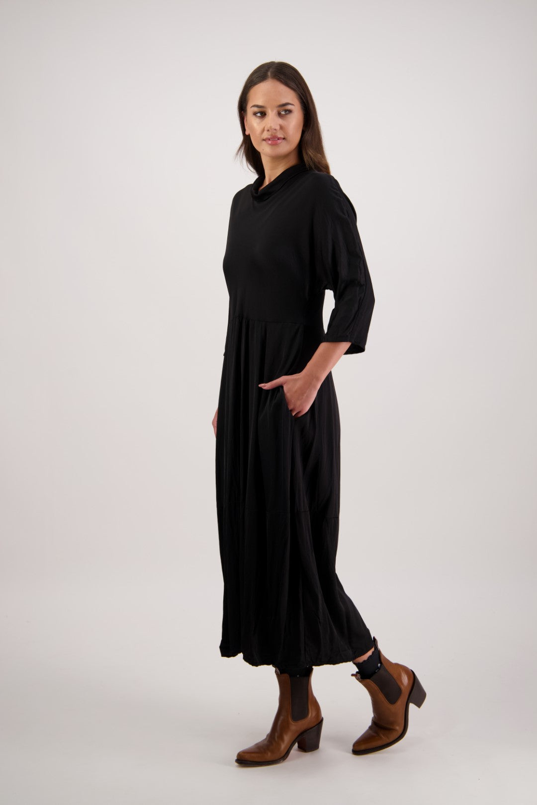 Made from 100% viscose, the Rowena Dress is a sophisticated, effortlessly wearable piece. The roll neck and bias-cut top create a flattering fit, while 3/4 sleeves and a soft puff hem add movement and charm. Fully lined and finished with discreet pockets, it’s a versatile dress that combines comfort, elegance, and everyday practicality.