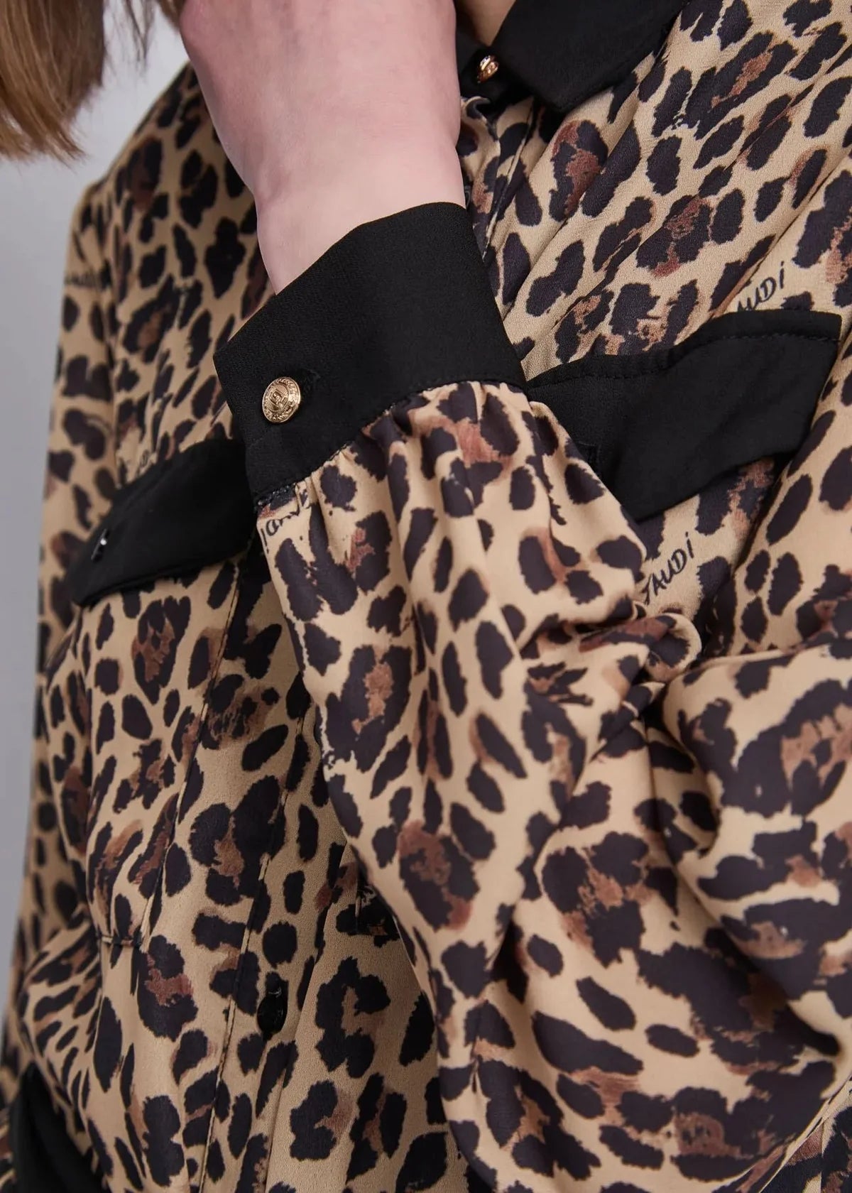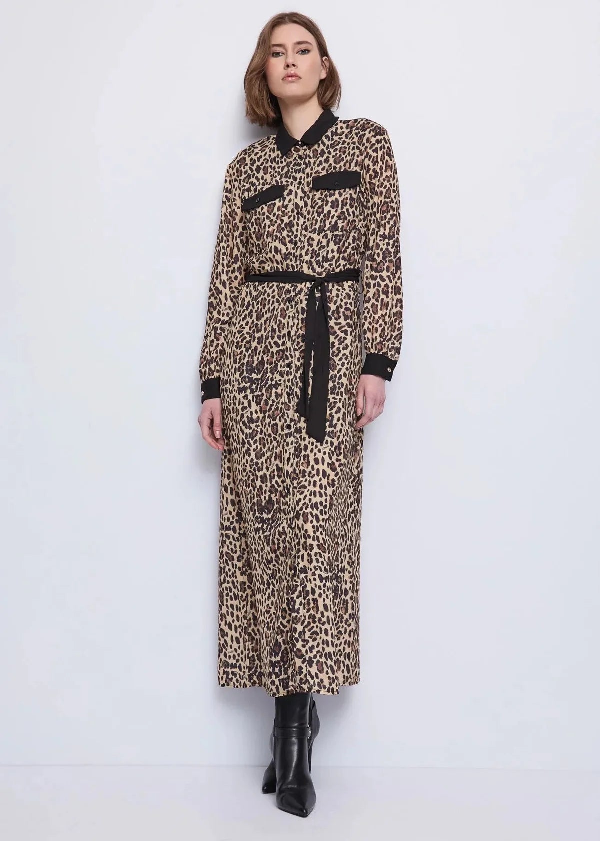 GAUDI LONG GEORGETTE SHIRT DRESS-ANIMAL PRINT