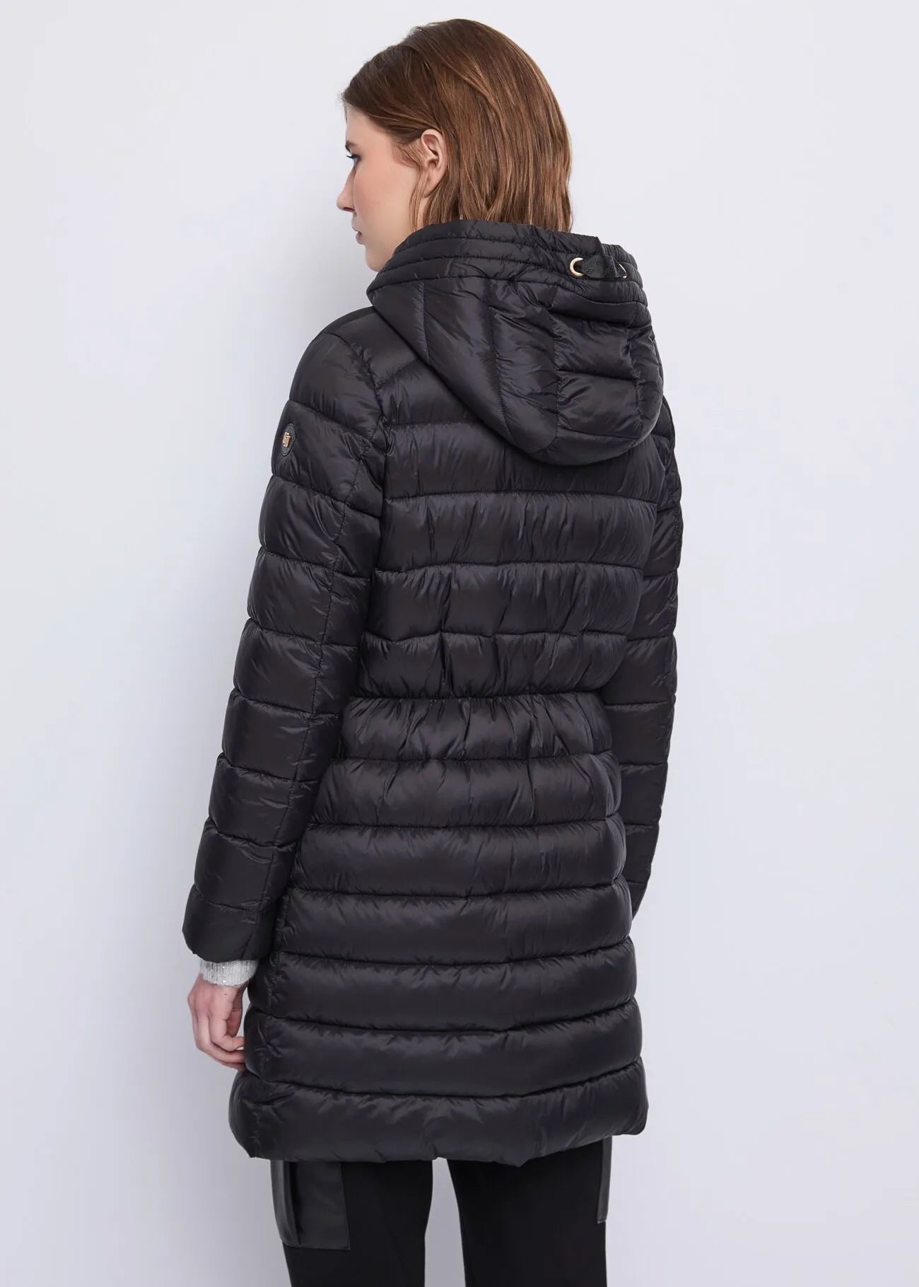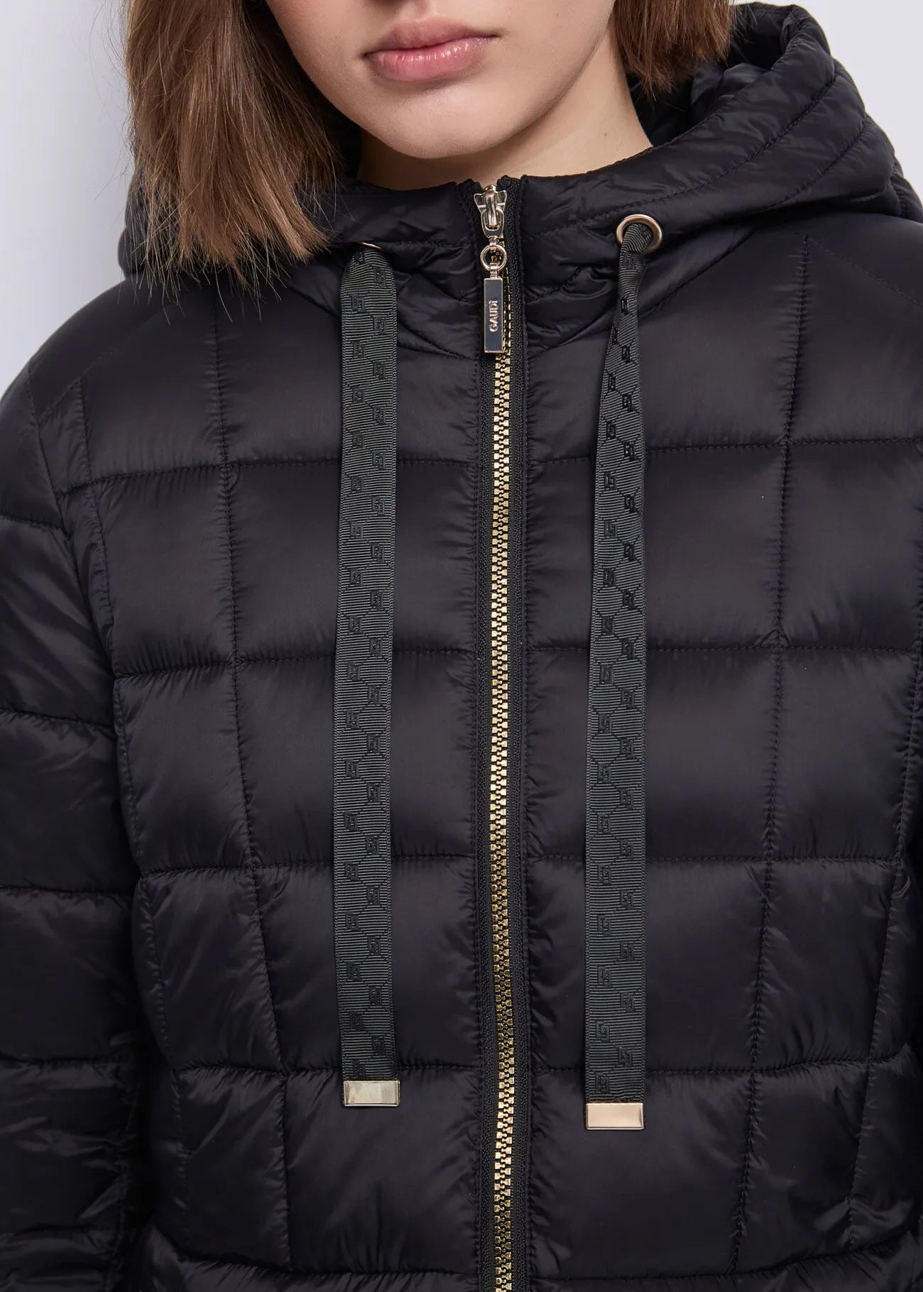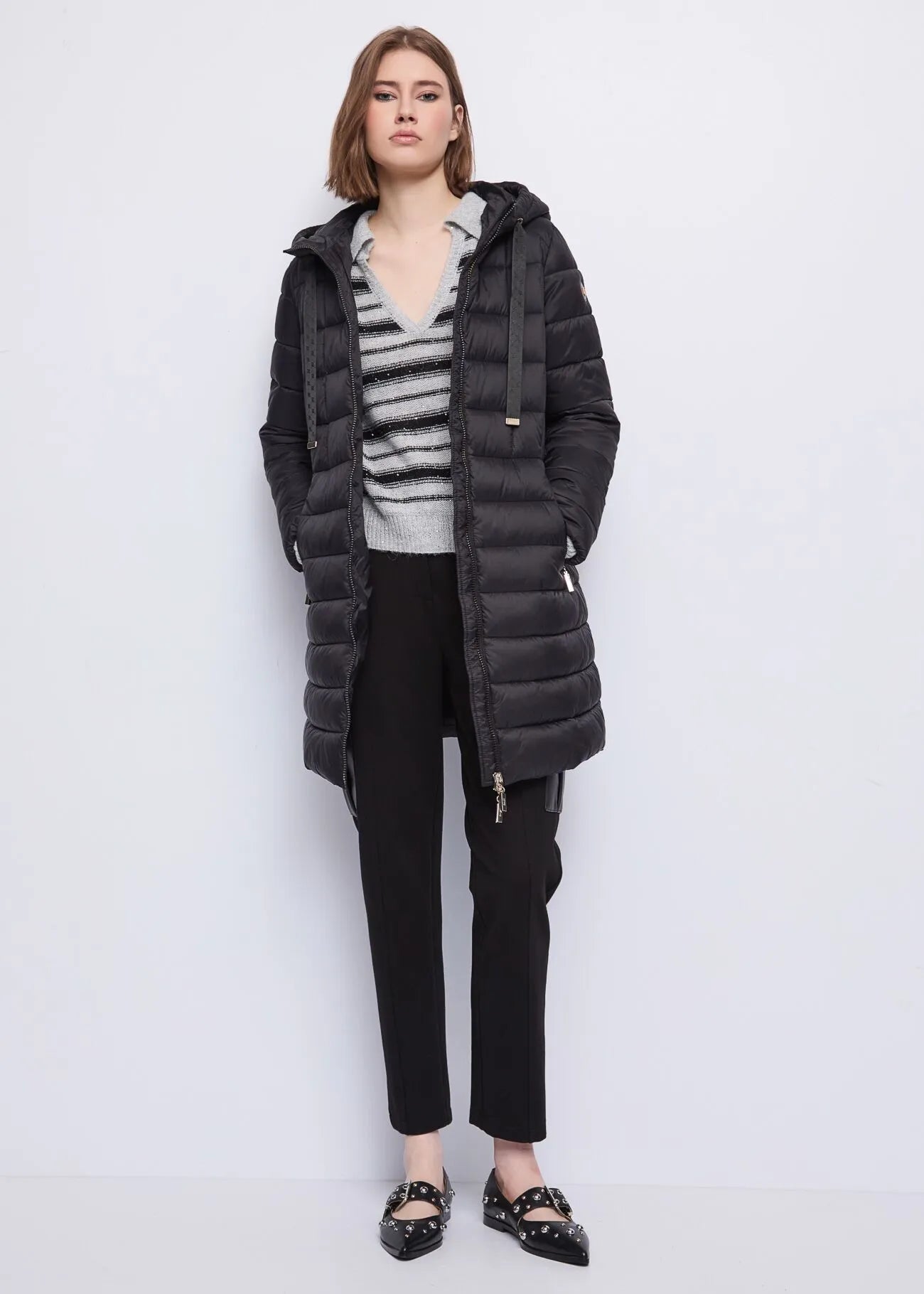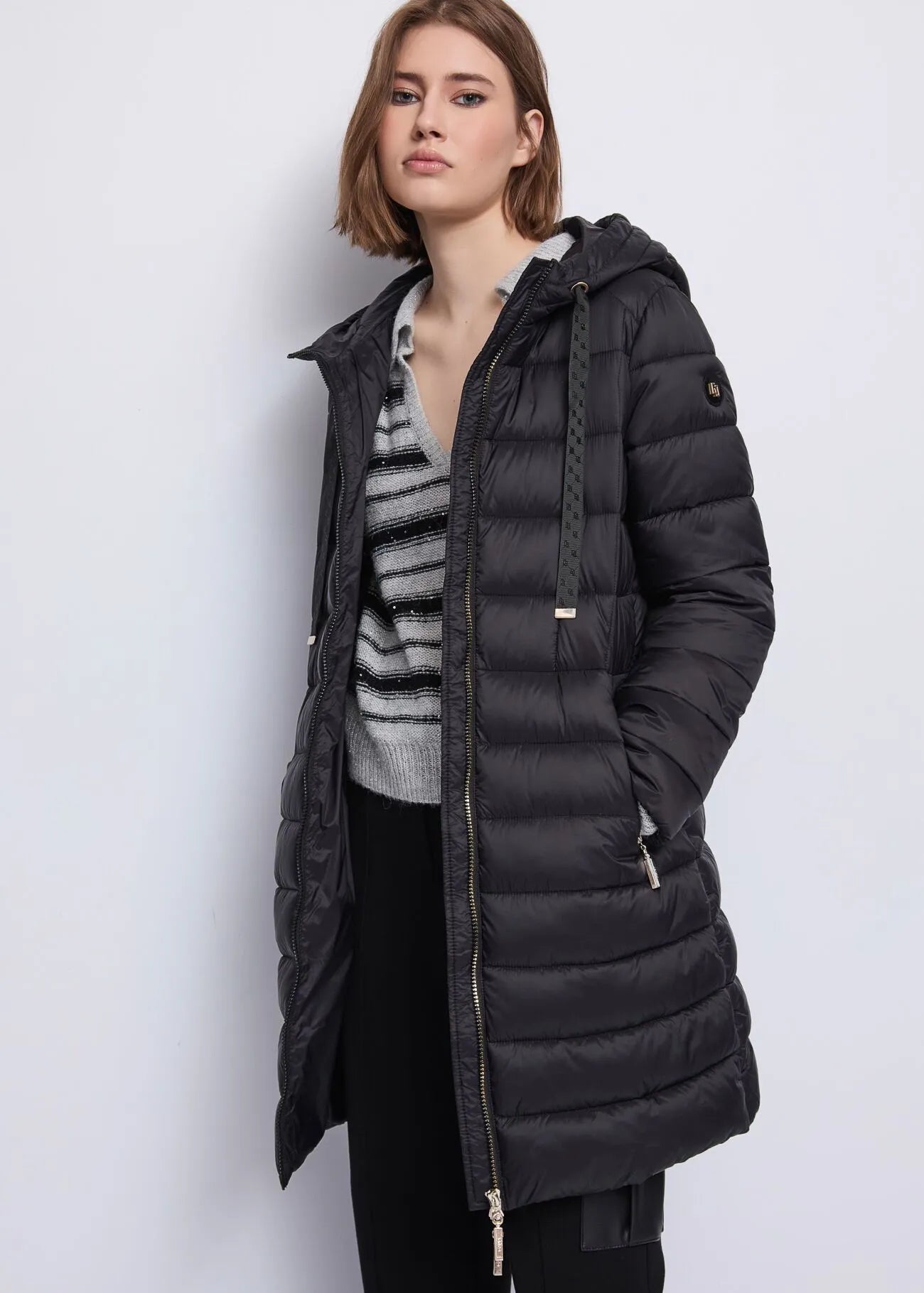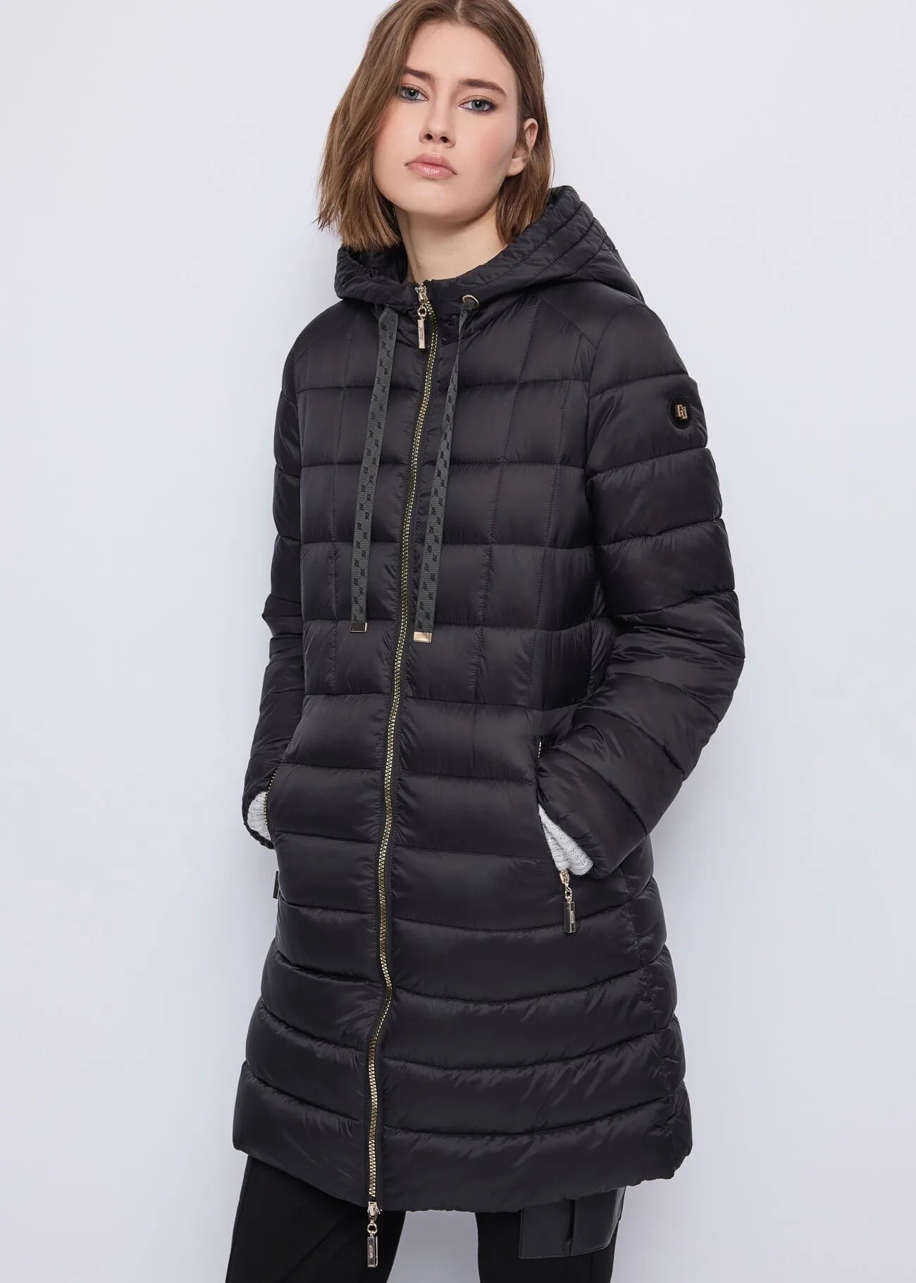 Choose the ultralight quilted nylon down jacket with hood, metal GJ logo, and two-way zip. A must-have for the winter season.