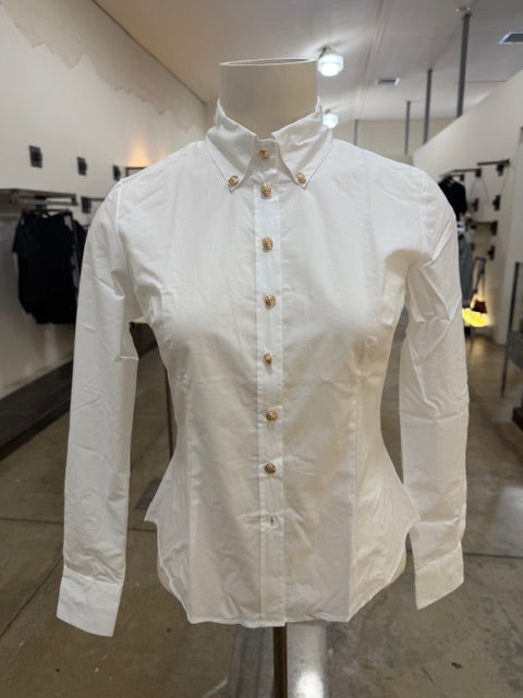 Pointed collar, button closure, long sleeves. Regular fit.