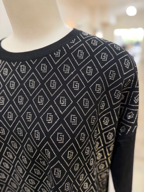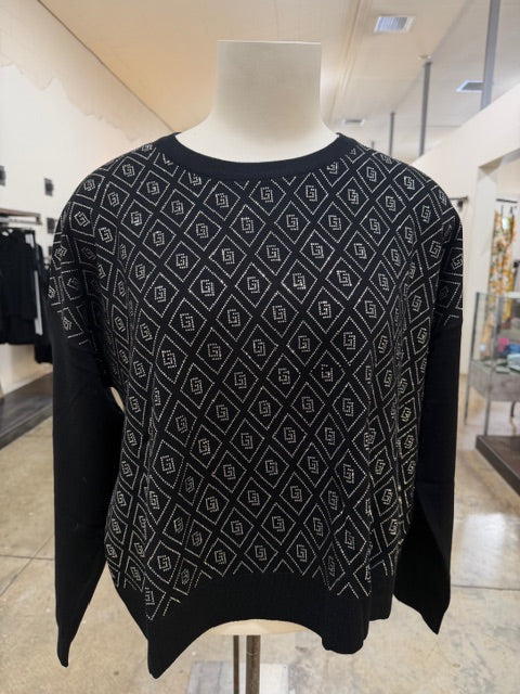 Choose the crew neck sweater in soft viscose blend yarn with GJ logo and rhinestones. A bright and refined piece for your everyday look.
