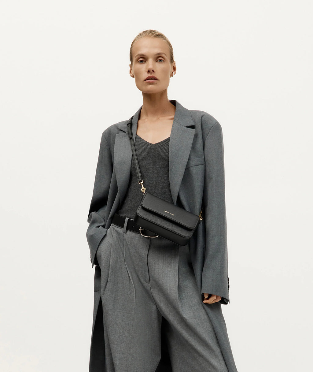 KAREN WALKER PUFFY RUNAWAY CROSSBODY BAG-STEEL/BLACK