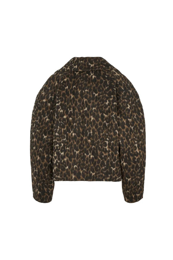 Marion is a short, double-breasted coat with a wide collar, black button closure and a slightly boxy silhouette that adds structure and modern attitude.