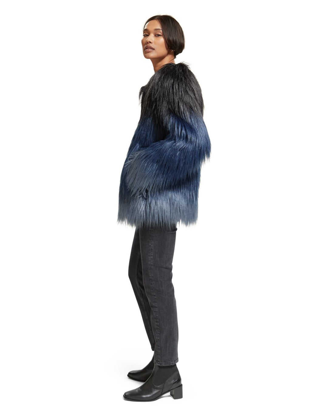 SCOTCH & SODA GRADIENT FAUX FUR JACKET-BLUE