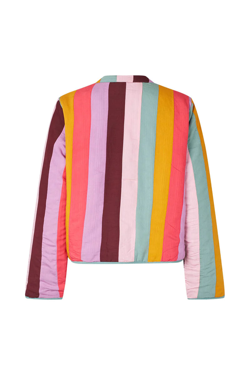 Emilia is a colourful and feminine jacket full of Lollys personality. Made from a soft, lightly padded fabric with bold stripes in the season’s most beautiful tones. It features a short, boxy fit, round neckline and delicate buttons down the front. Wear it as a transitional jacket or as a colourful indoor layer.