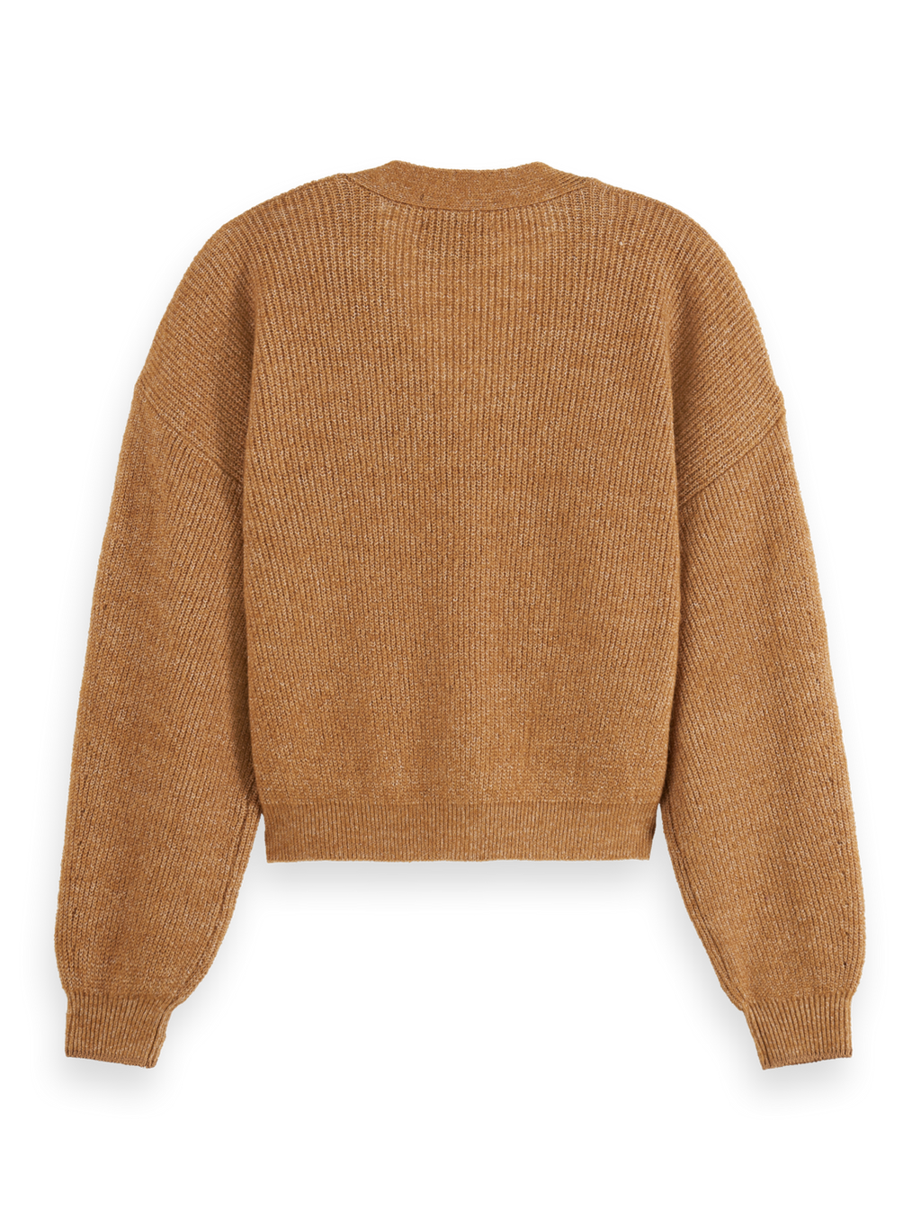 MAISON CORE FUZZY RELAXED CARDIGAN-TOBACCO