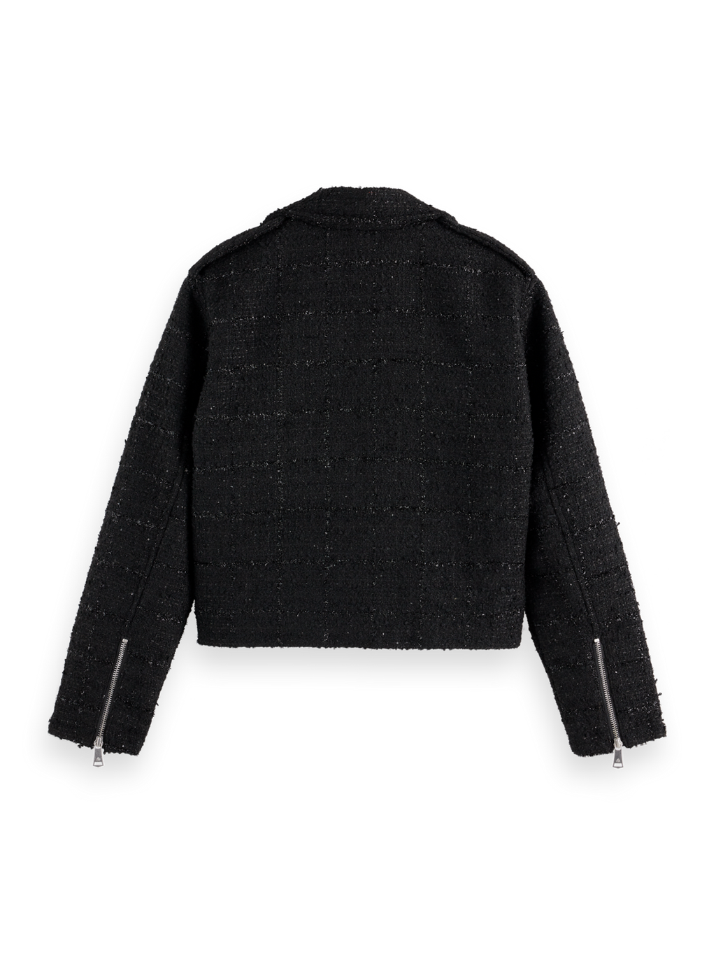 MAISON BOUCLE TWEED BIKER JACKET-BLACK