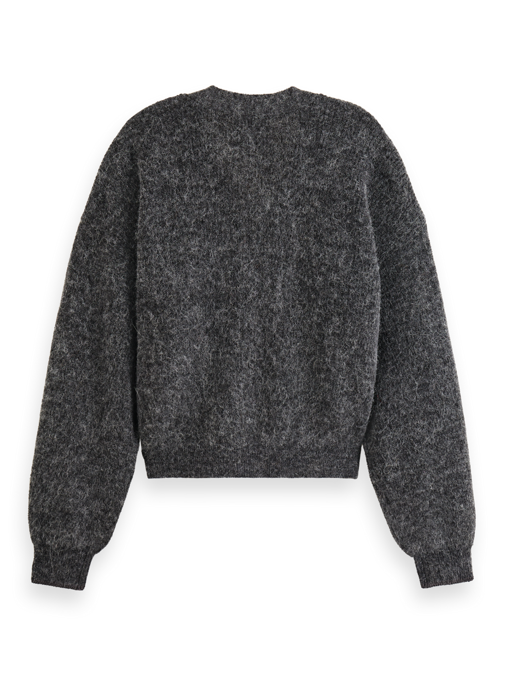 MAISON CORE FUZZY RELAXED CARDIGAN-CHARCOAL