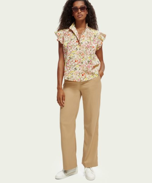 MAISON PRINTED FLUTTER SLEEVE SHIRT