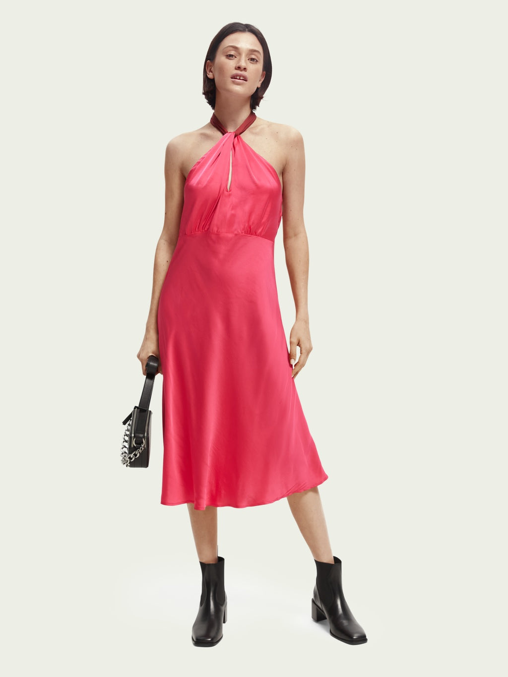 MAISON DRAPED DRESS-CHERRY/WHITE
