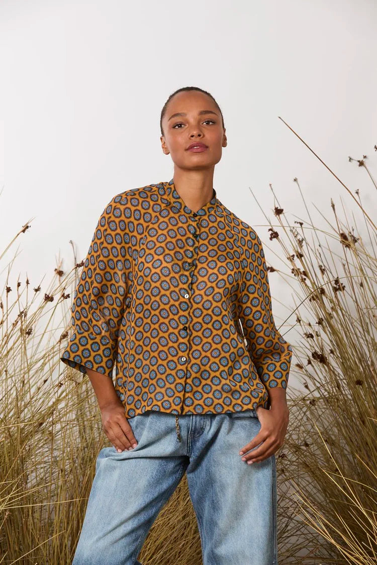 MAUD DAINTY LOLLY TOP-YELLOW/BROWN