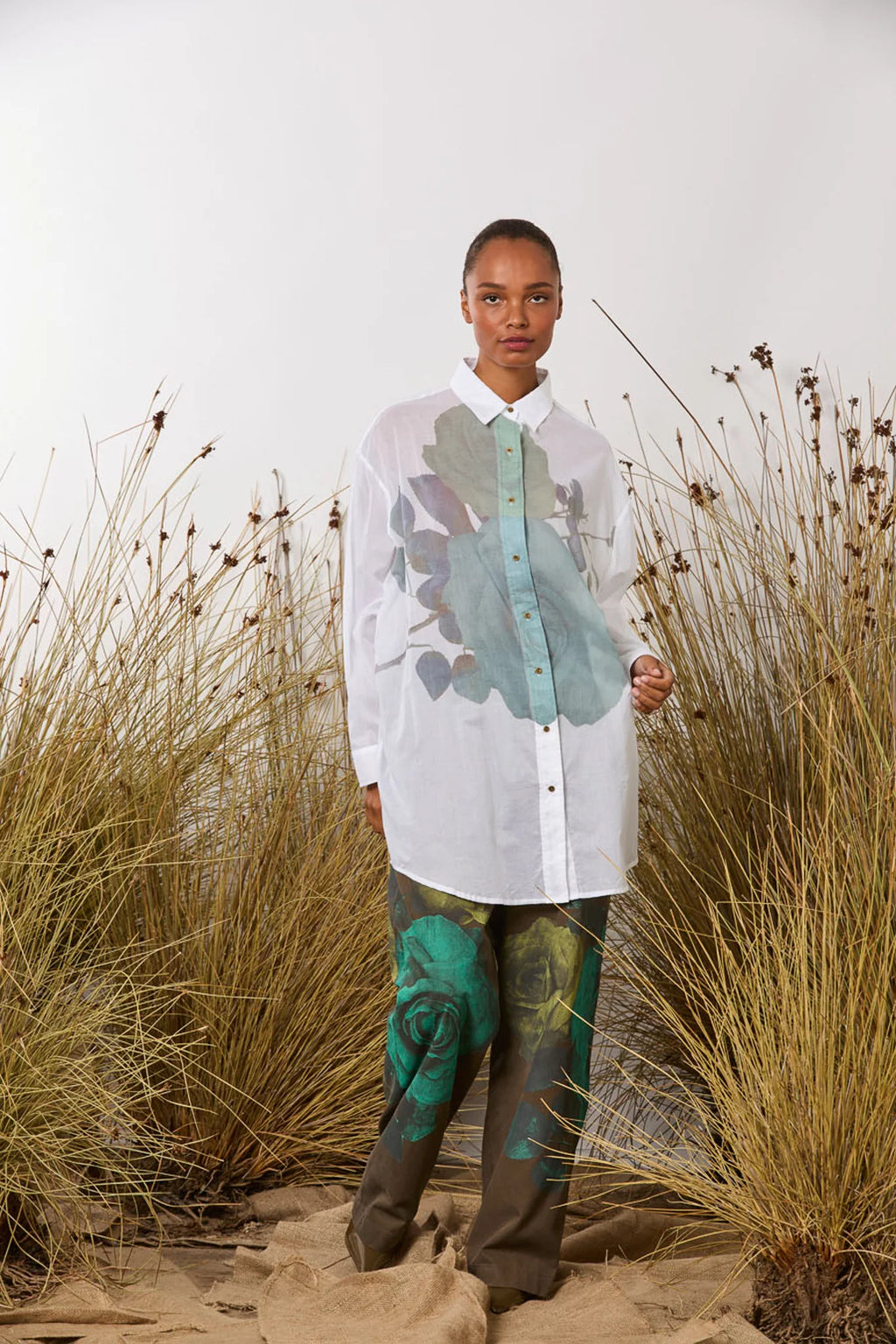 MAUD DAINTY CATS MEOW SHIRT-BIG ROSES