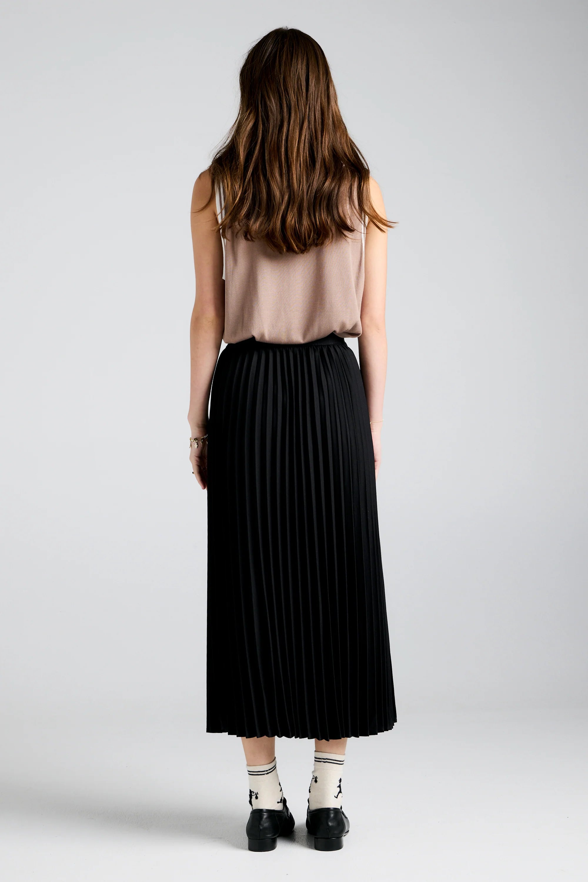 The Sunray Pleated Skirt is a versatile midi-length piece defined by its neat pleats and flowing silhouette. Designed with an elasticated waist for seamless comfort and fit, this skirt is perfect for styling up with a tailored blazer or cashmere sweater or down with a relaxed tee.