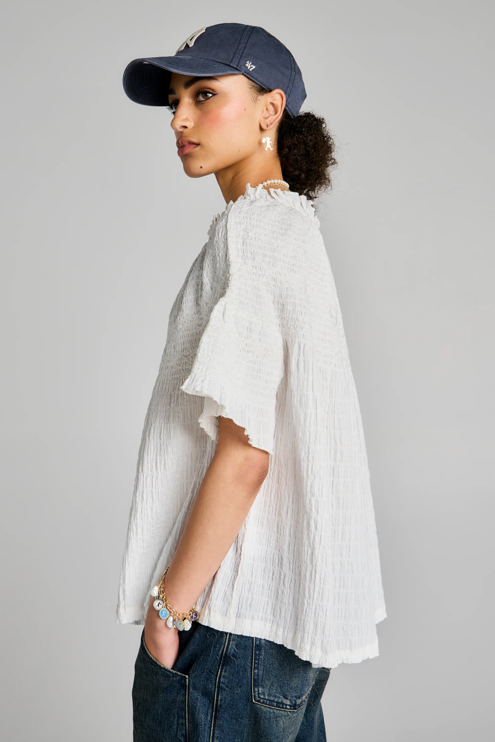 The Theia Smocked Blouse showcases intricate smocking at the neckline and sleeves. Crafted from organic cotton with a crinkle finish, it provides a relaxed fit that’s both comfortable and versatile. A timeless piece that’ll be a wardrobe go-to for many years to come.