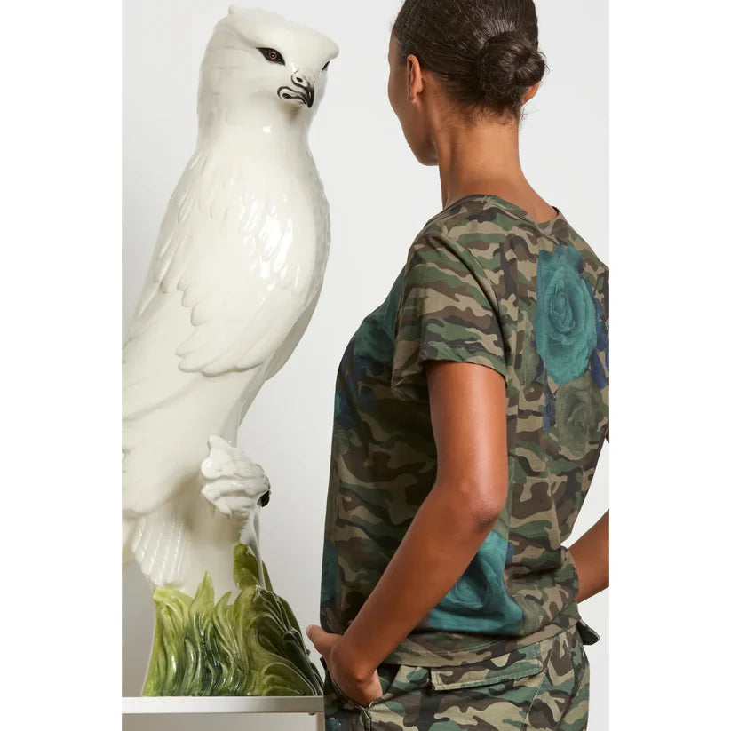 The M.A Dainty Lolly Tee in Camo Rose combines softness and style with its 100% cotton fabric and distinctive green rose print on a camo background. Its classic round neckline and short sleeves offer timeless comfort, while the medium length makes it easy to layer or wear solo. This versatile piece blends feminine floral elements with a rugged camo base, perfect for elevating casual looks with ease.