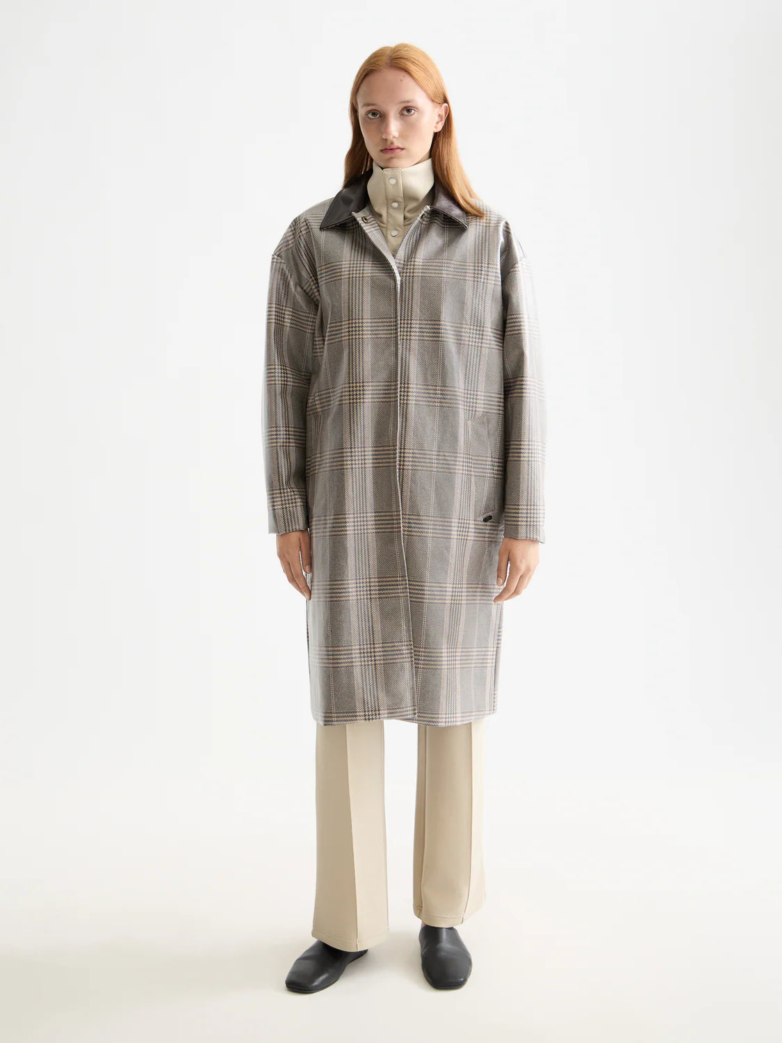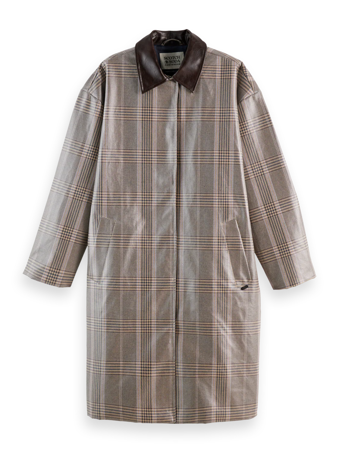 Sleek and functional, this coated raincoat is water-resistant with a clean design made for the elements.
