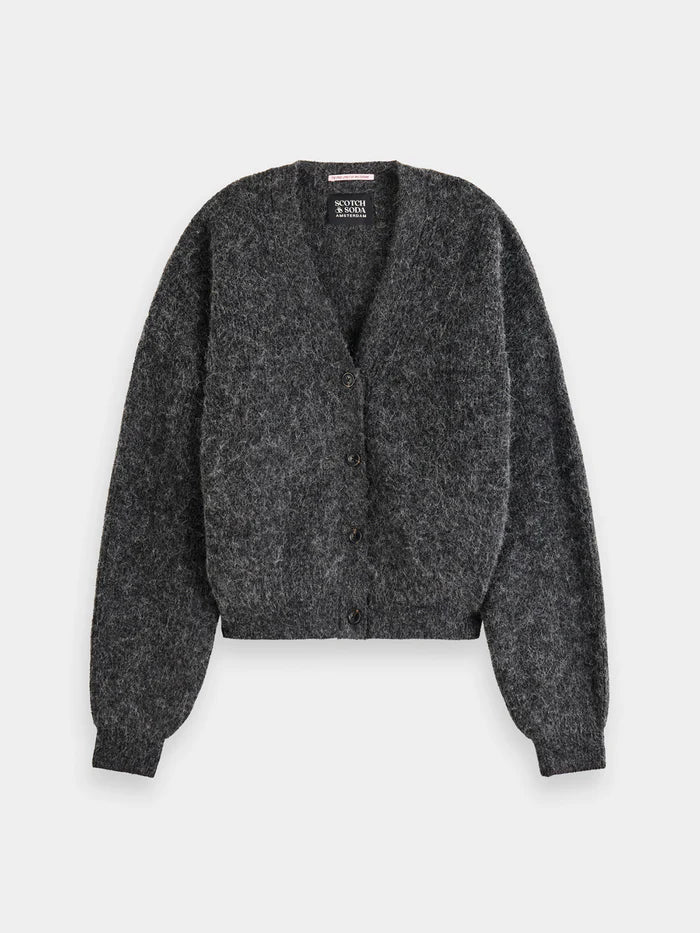 SCOTCH & SODA CORE FUZZY CARDIGAN-CHARCOAL