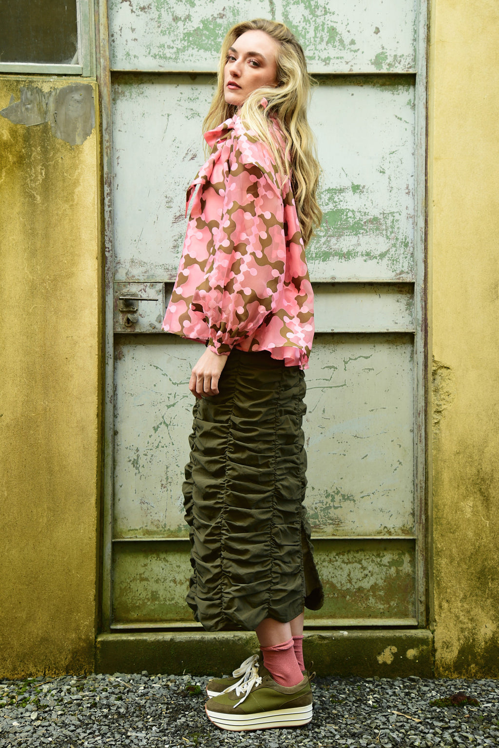 COOP SUGAR RUCHE SKIRT-KHAKI