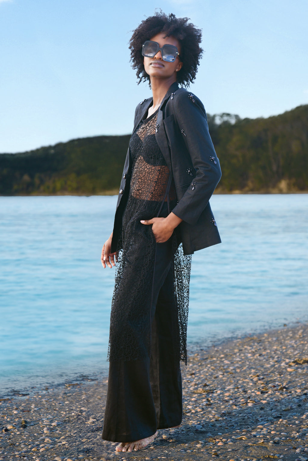 TAYLOR UNDONE TUNIC - BLACK CUBED MESH