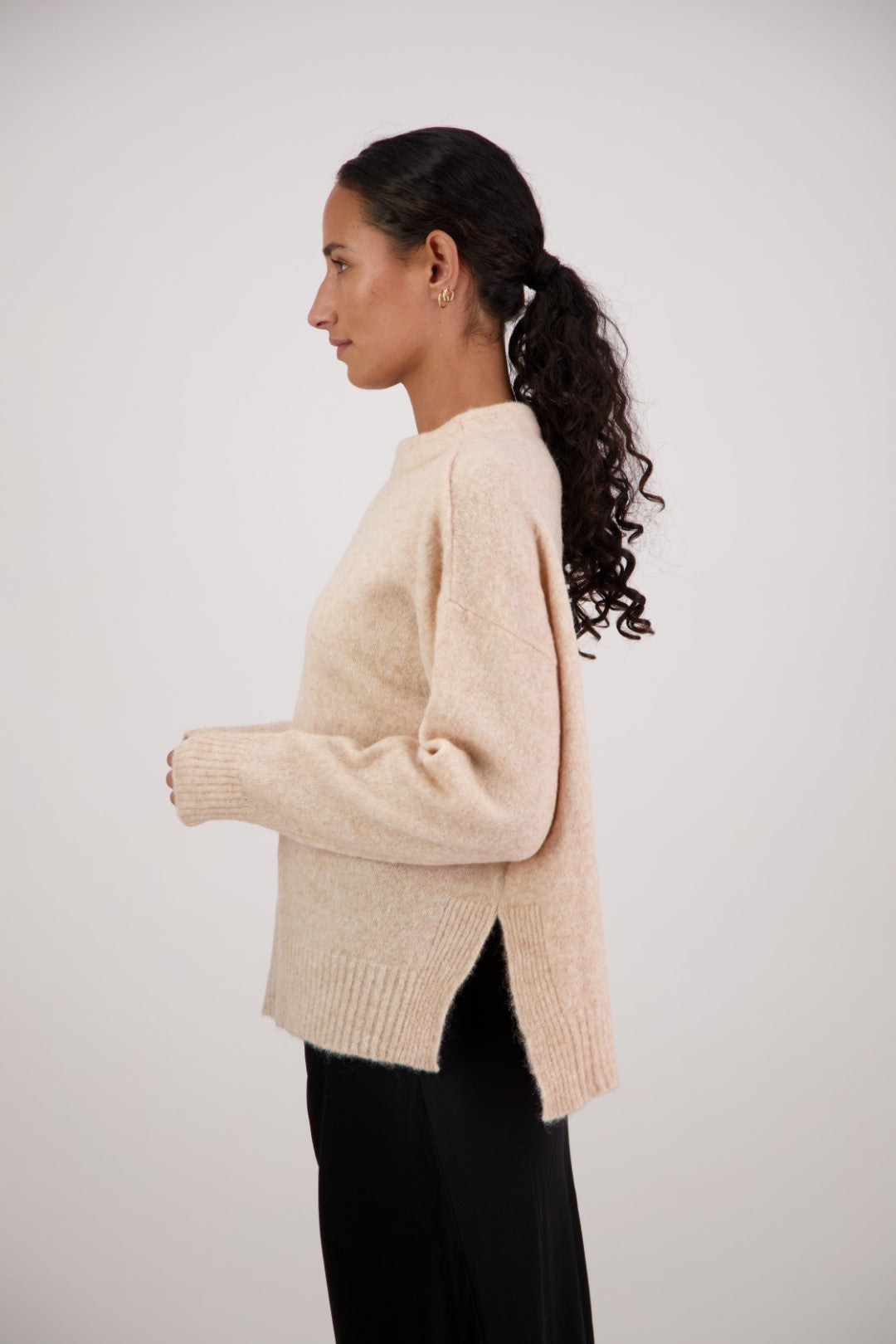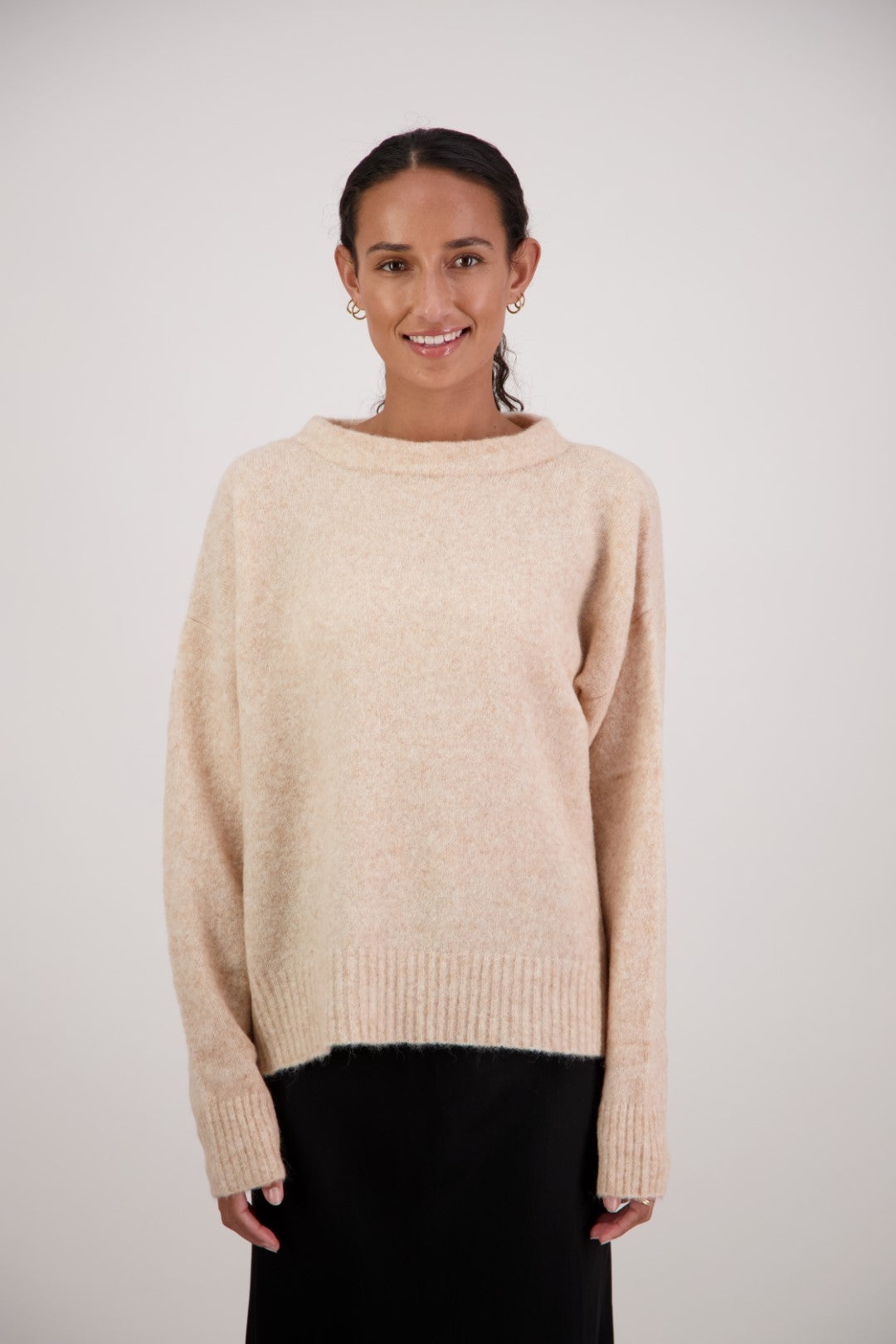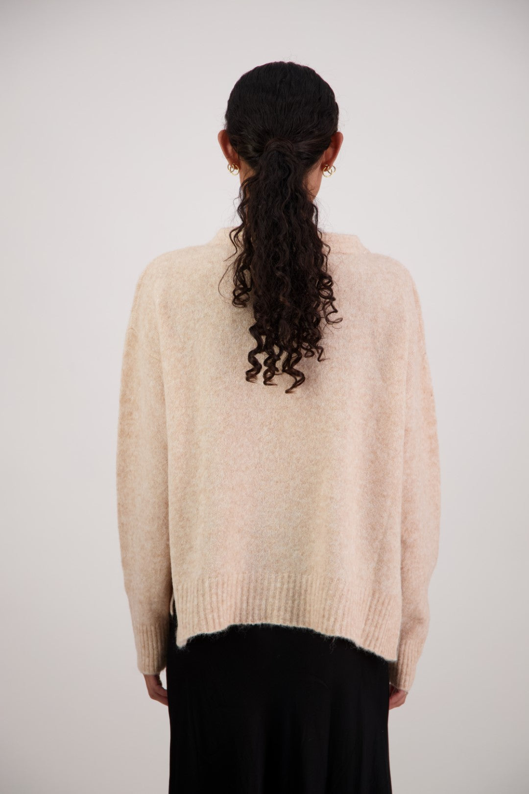 Crafted from a soft alpaca-wool blend, the Feather Jumper is a cozy yet refined layering piece. Featuring a funnel neck, long sleeves, and subtle side splits, it offers a relaxed fit with a longer back for effortless, modern drape. A versatile jumper that combines comfort with understated elegance.