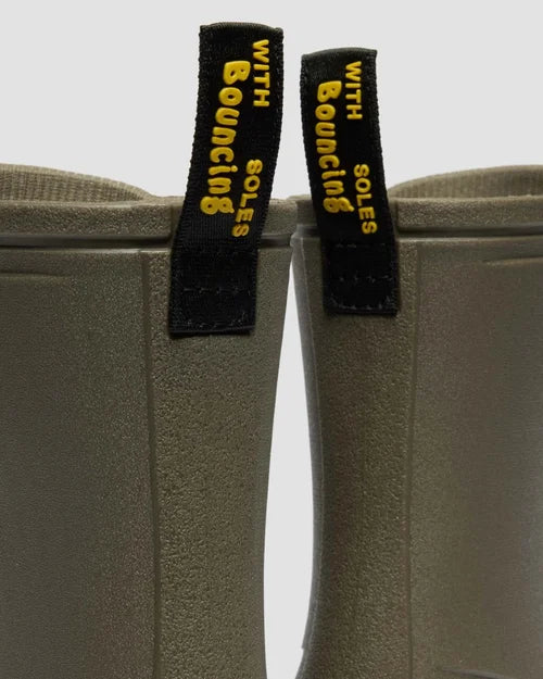 Born with fire. Raised on air. Ready for rain. The 1460 Rain boot is designed to defy the discomfort of a downpour — with heat sealed waterproof PVC and a bouncing sole. Shaped to mirror the silhouette of our iconic 1460 boot: with faux stitch detailing, a rubberised heel tab, and a custom last shape to echo the fit and feel of the Original Dr. Martens boot. The air cushioned BEN sole is rugged and ready for long days on your feet. And our SoftWair insole ensures comfort from your first steps.