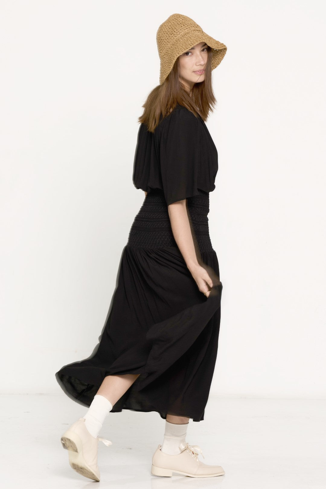 SALASAI JEZEBEL DRESS SHIRRED-BLACK